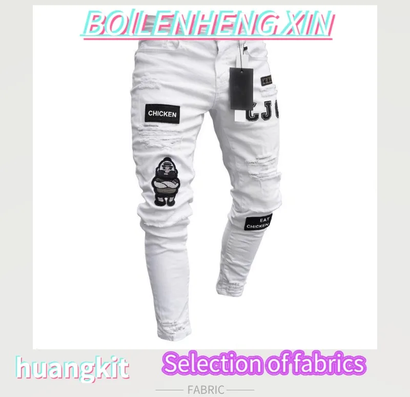 Джинсы с вышивкой дырками, облегающие мужские брюки, новинка 2020, ...