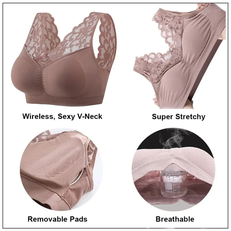 Бюстгальтер женский кружевной бесшовный из дышащей ткани, размера плюс