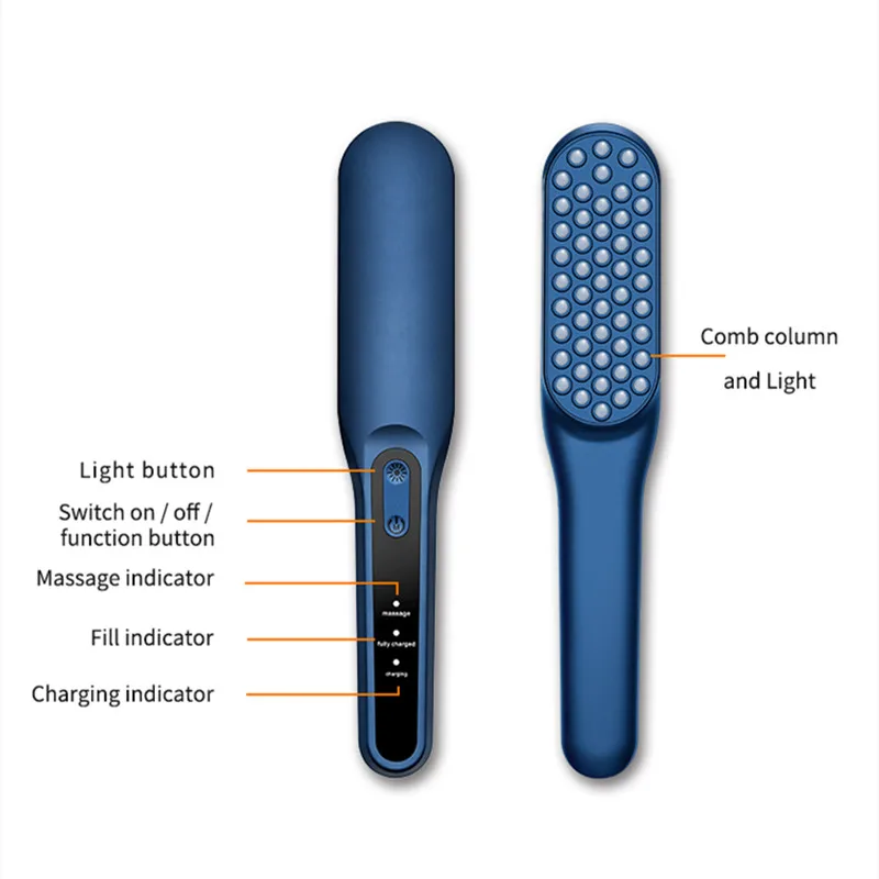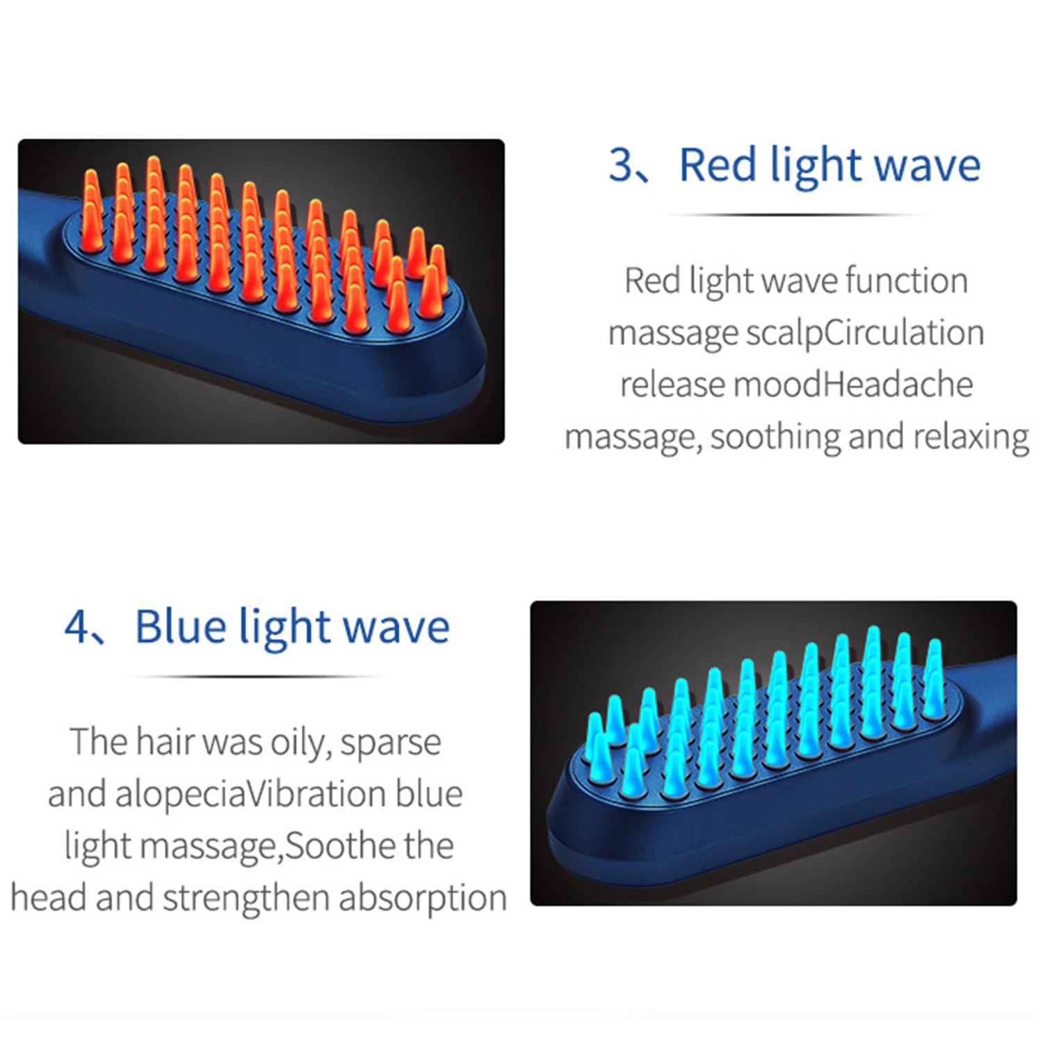 2. Красный/синий светильник для терапии, уменьшает масло для волос, встроенный литиевый аккумулятор, срок службы батареи.