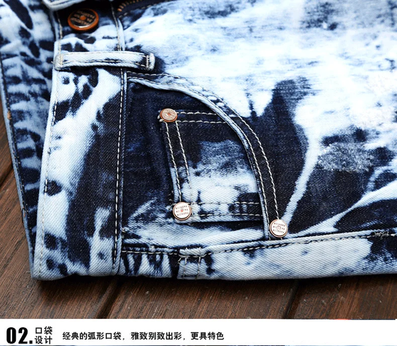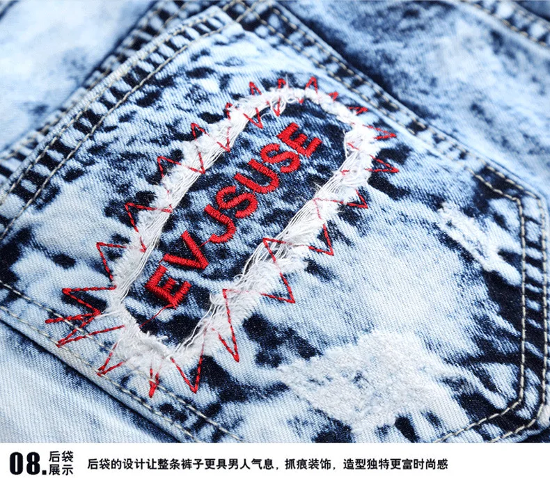 Мужские рваные джинсы стрейч составного кроя с вышивкой, модные пря...
