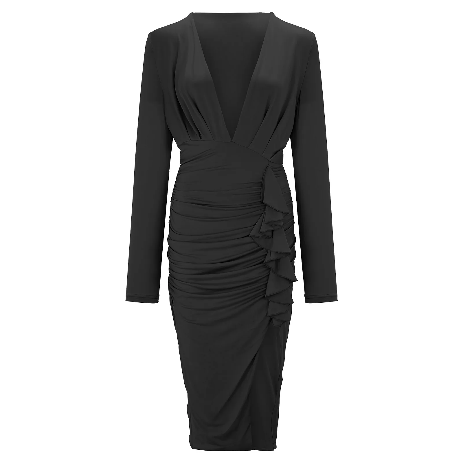 Платье-миди женское с рюшами, корсет с длинным рукавом и V-образным вырезом, облегающее вечернее клубвечерние платье, весна-лето