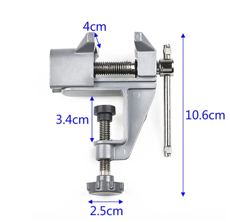 Подробности:* Корпус Mini Vise изготовлен из литого алюминия, удобные миниатюрные тиски* Зажим для любого деревянного блока для шлифования, шлифования, деталей, сверления, резьбы, точения и т. д.* Идеально подходит для хранения мелких деталей в ювелирных изделиях, хобби, модельном производстве, электронике, доме и работе-скамейке много других приложений* Цвет: случайныйПримечание:Настоящий цвет товара может незначительно отличаться от изображений на веб-сайте из-за таких факторов, как яркость монитора, яркость освещения и т. д.
