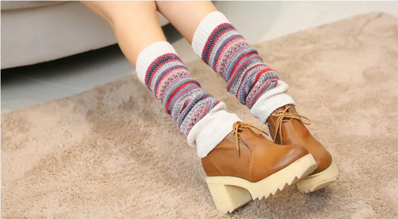 Новинка, теплые зимние дизайнерские чулки, женские носки до колена, шерстяные красочные женские вязаные раньше для девочек