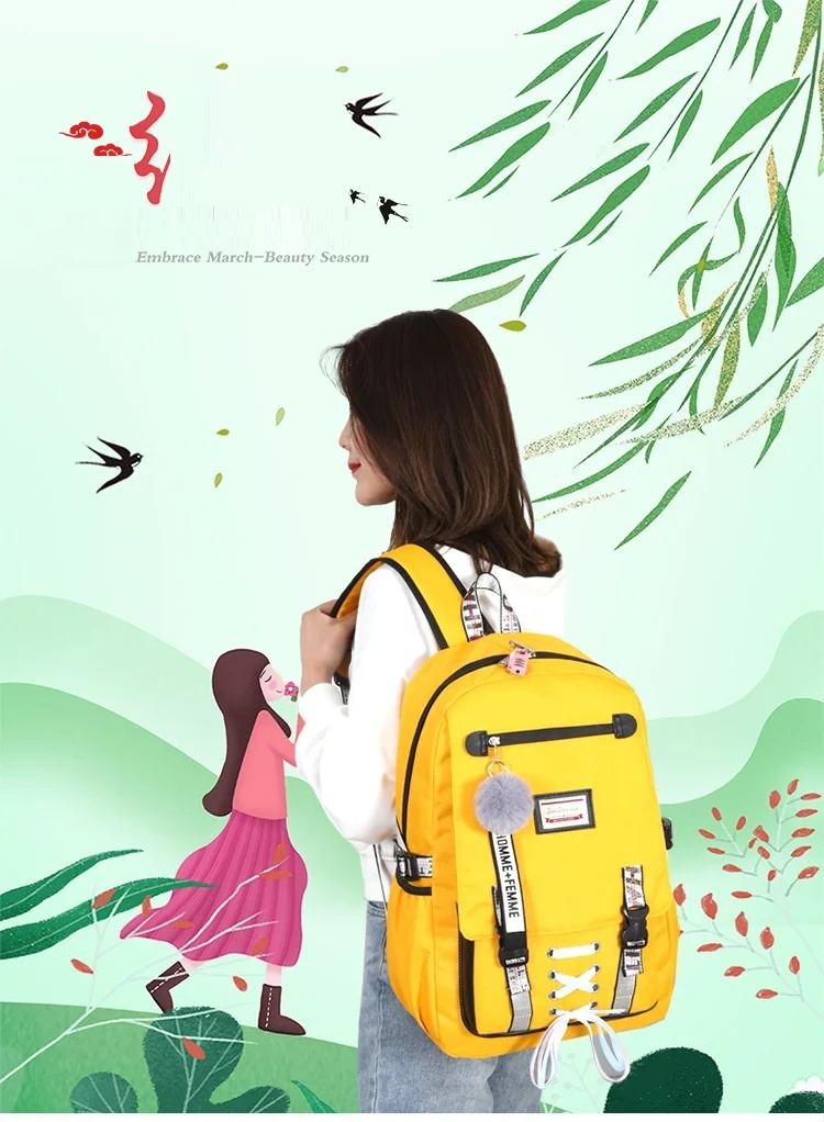 Рюкзак для отдыха для молодых девушек, противокражная сумка с USB-замком, большая школьная сумка, для средней школы, молодежного университета, 2020