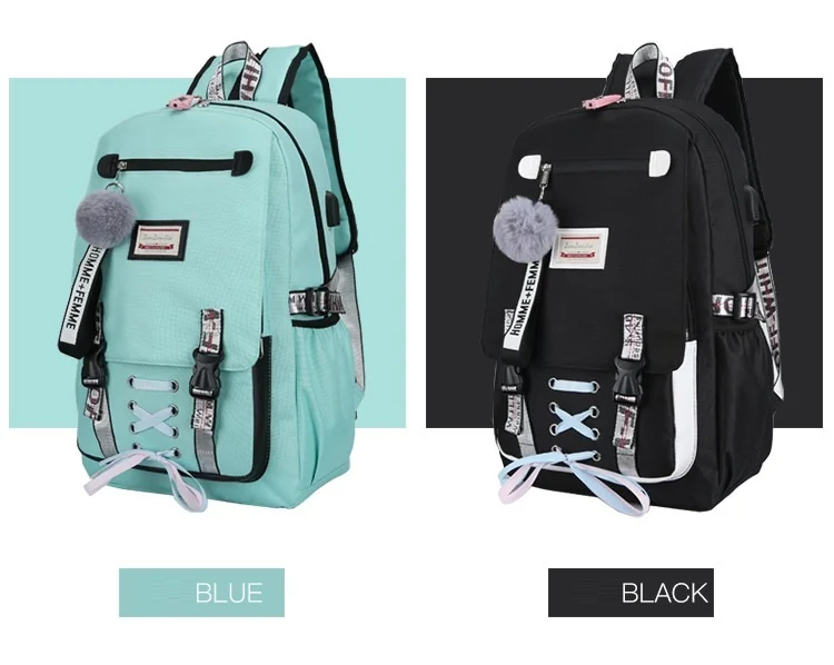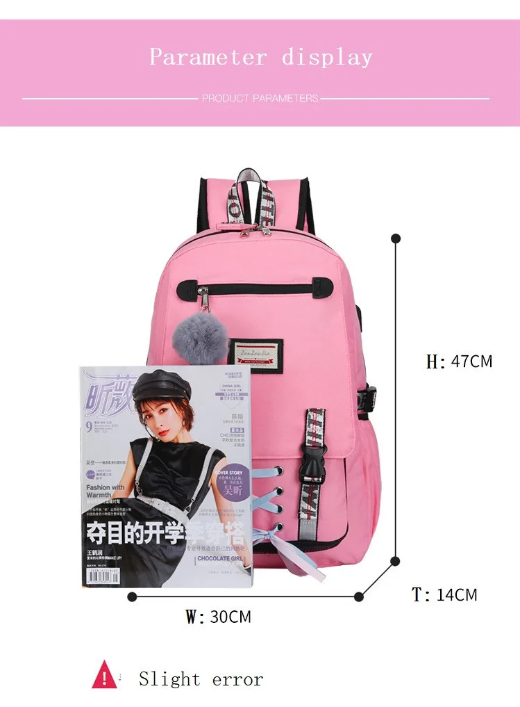 Модный женский рюкзак для книг с USB-зарядкой, милый школьный ранец...