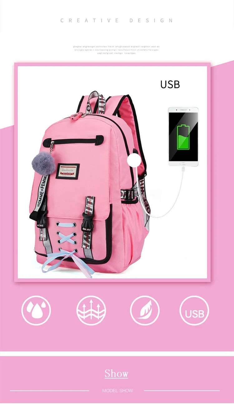 Женские школьные рюкзаки, Противокражные школьные сумки, usb-рюкзак...