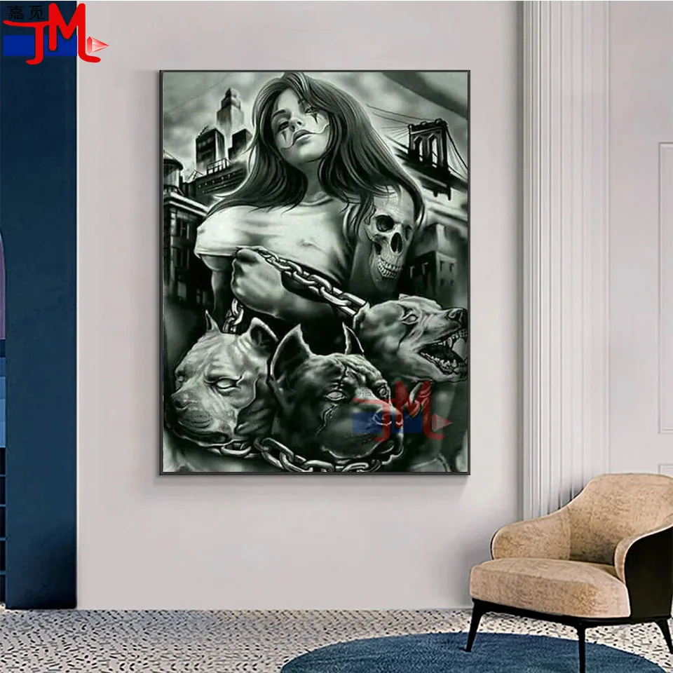 Череп женщина и алмазная вышивка Собаки Полный дисплей DIY черно-белые бриллианты картина квадратная мозаика готическое искусство картина ручной работы