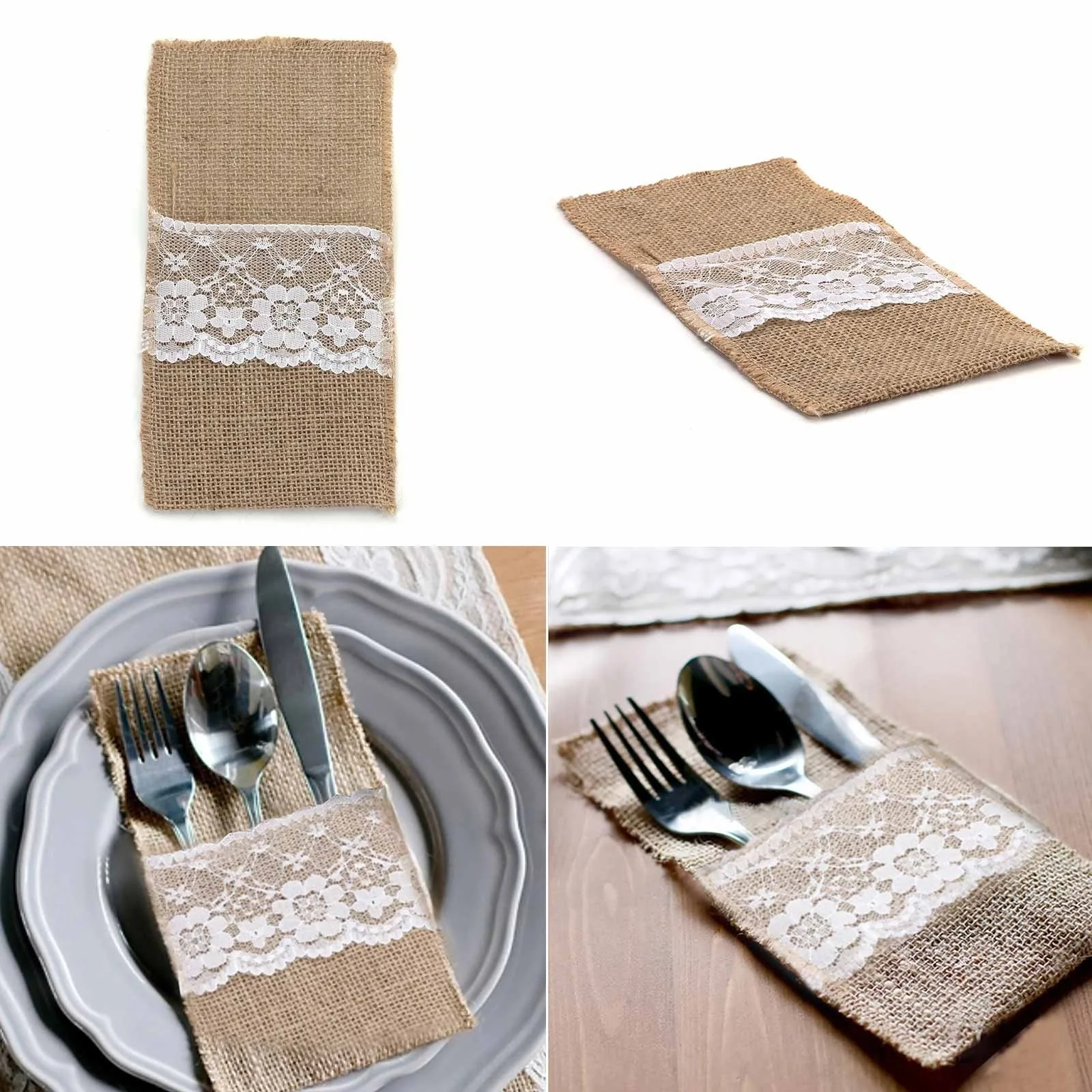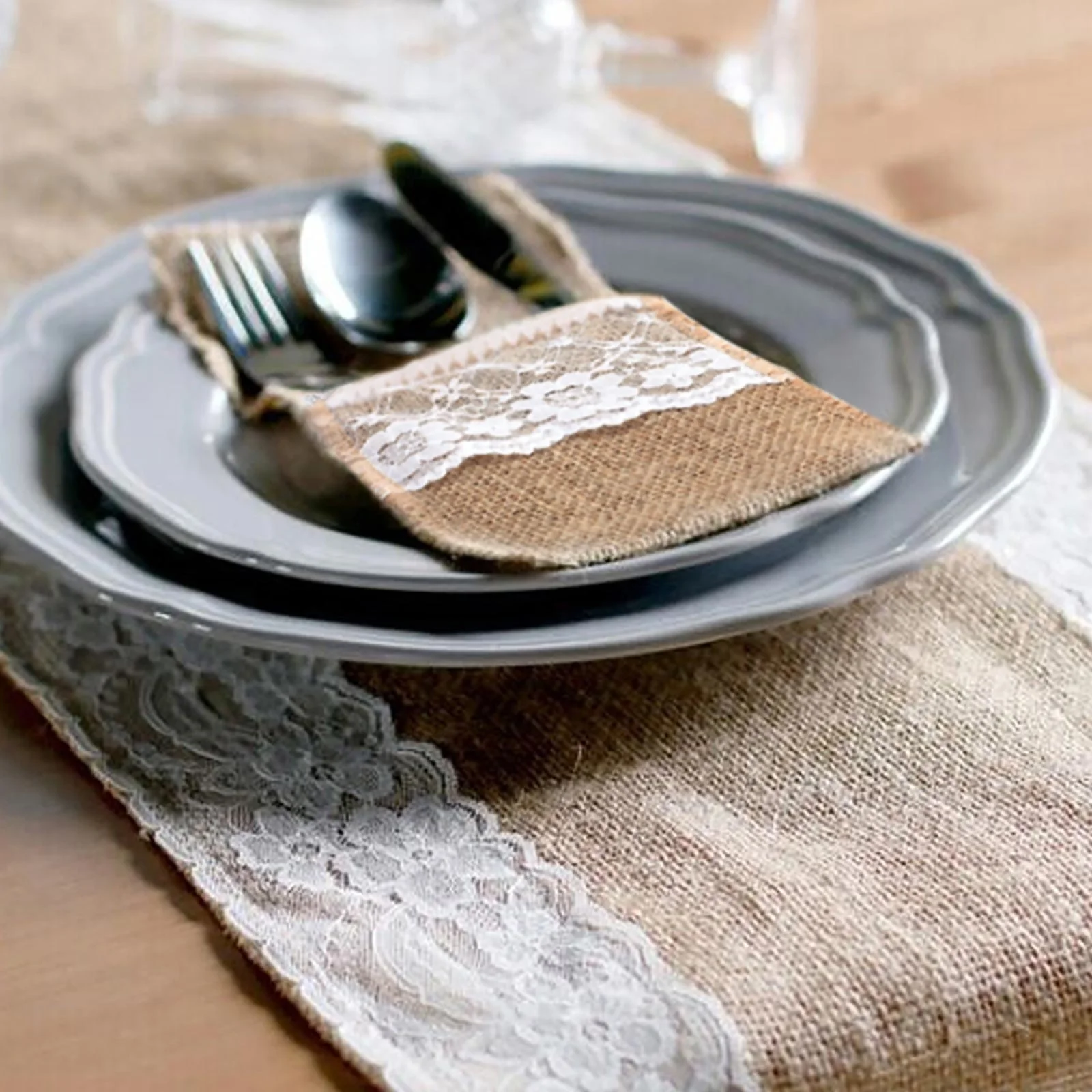 Искусственная посуда из мешковины, искусственный льняной нож и вилки, винтажное украшение для свадебной вечеринки в рустикальном стиле
