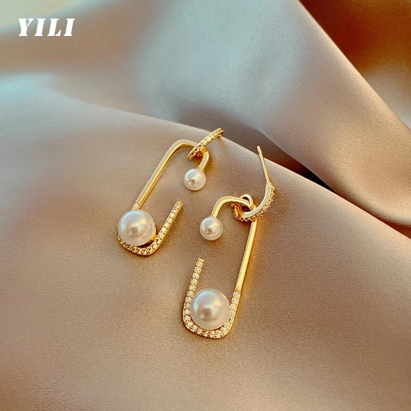 Новые простые серьги-гвоздики в стиле знаменитостей с золотым жемчу...