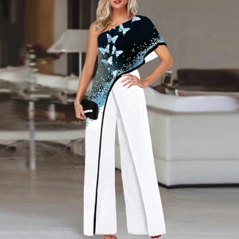 Женский Длинный комбинезон на одно плечо, с широкими штанинами