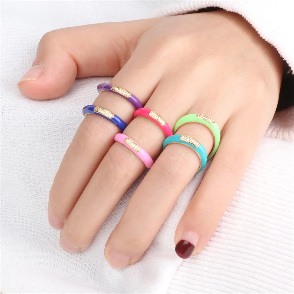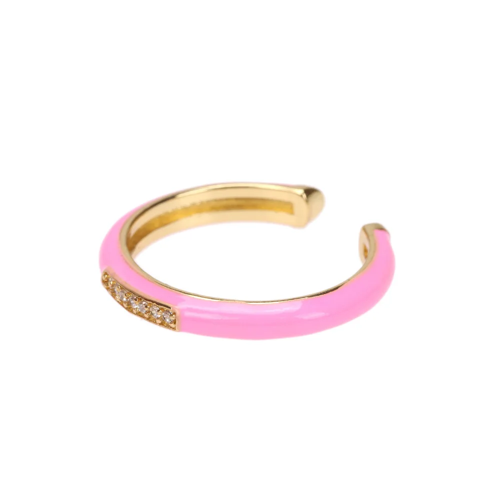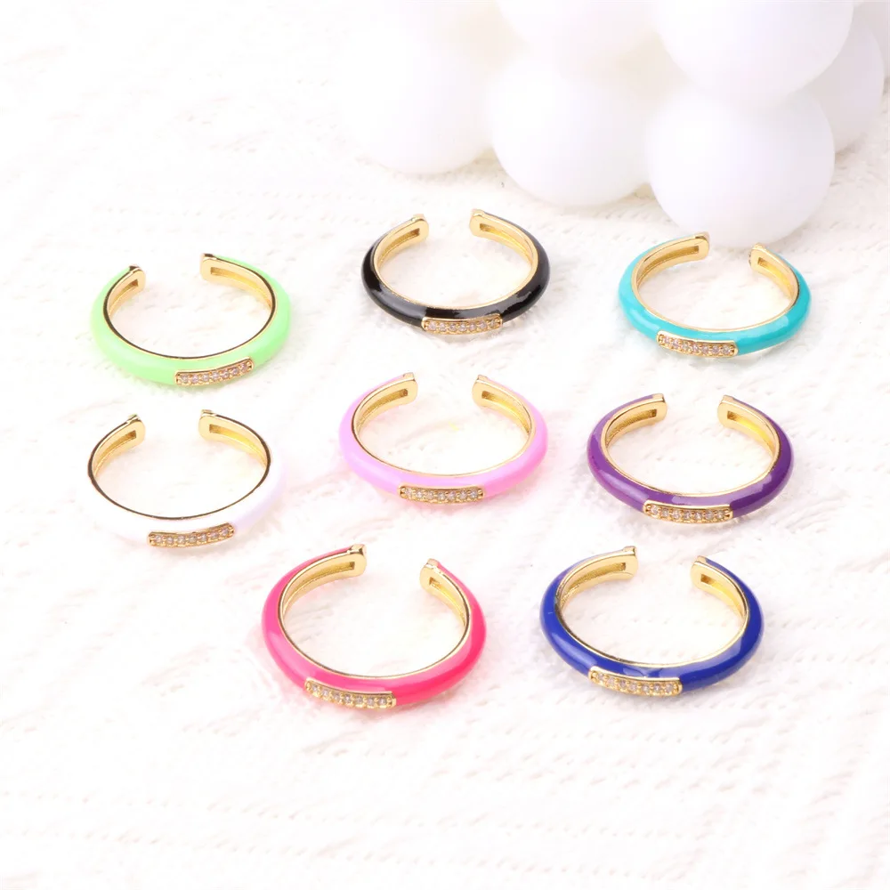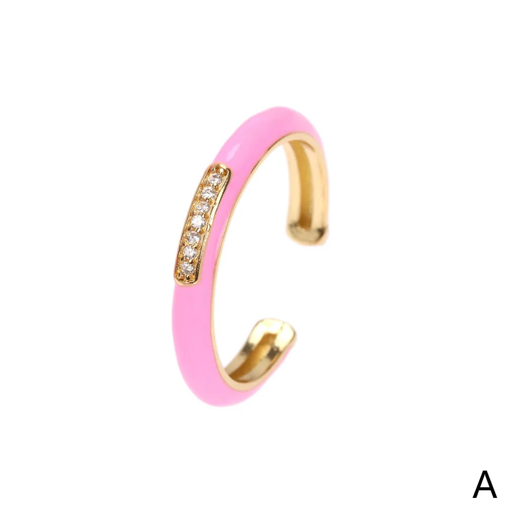 Женское Открытое кольцо с эмалью и фианитом, позолоченное кольцо вечности, корейское новое кольцо