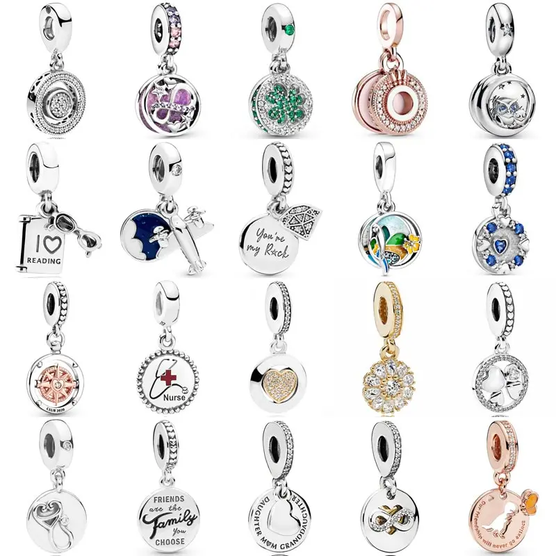 Pandora сверкающие бусины-подвески с логотипом короной O Infinity Hearts Clover Owl, серебряные подвески для браслета DIY, ювелирные изделия