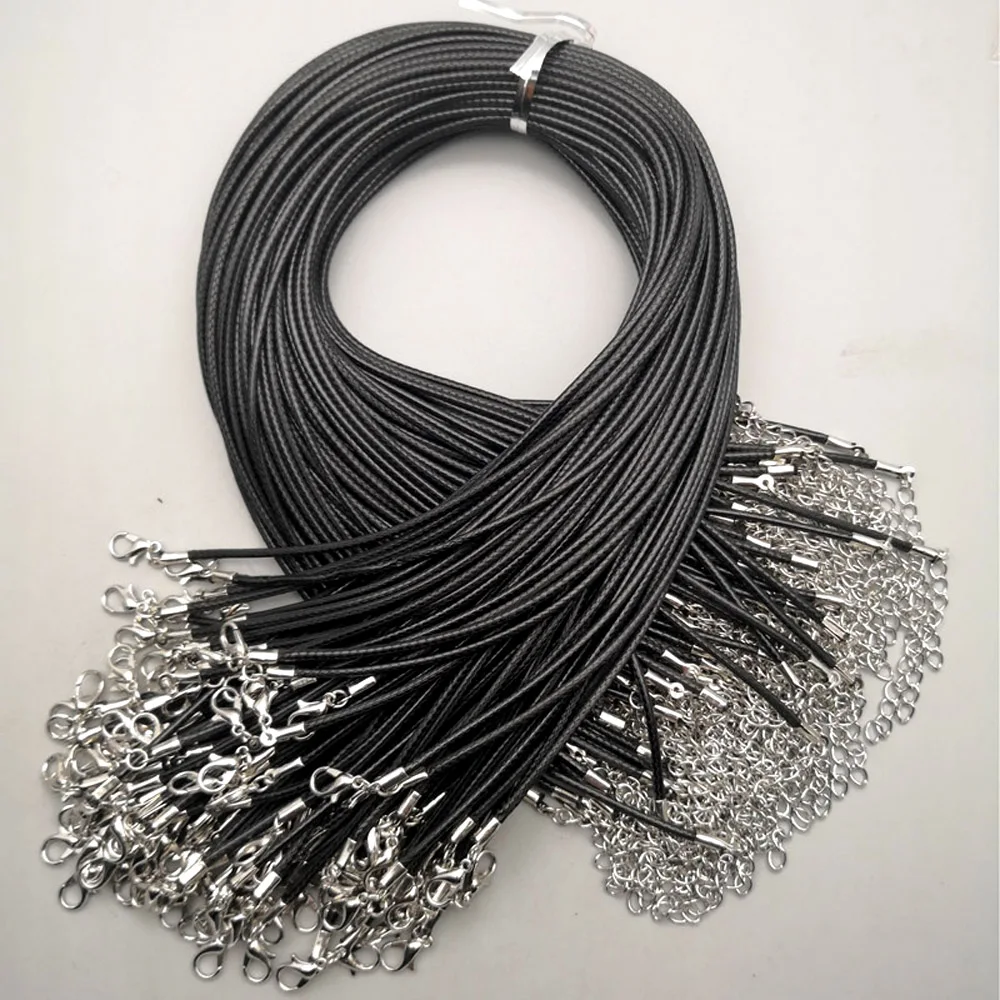 Модная черная Вощеная одежда 1,5 мм 45 см 60 см 70 см + 5 см ожерелье с застежкой-лобстером шнур для ювелирных изделий Подвеска шнуры 100 шт.лот Бесплатная доставка