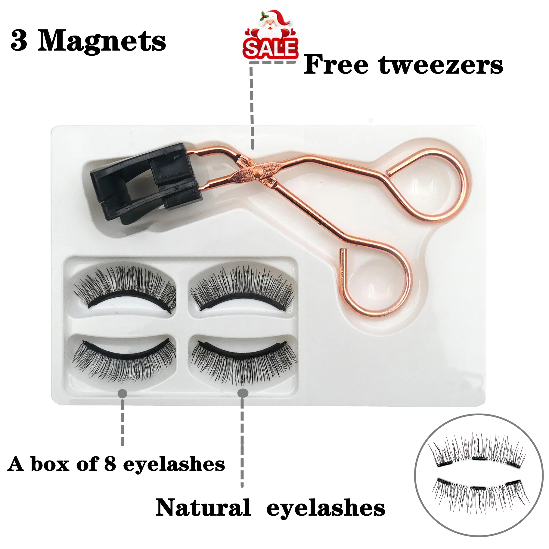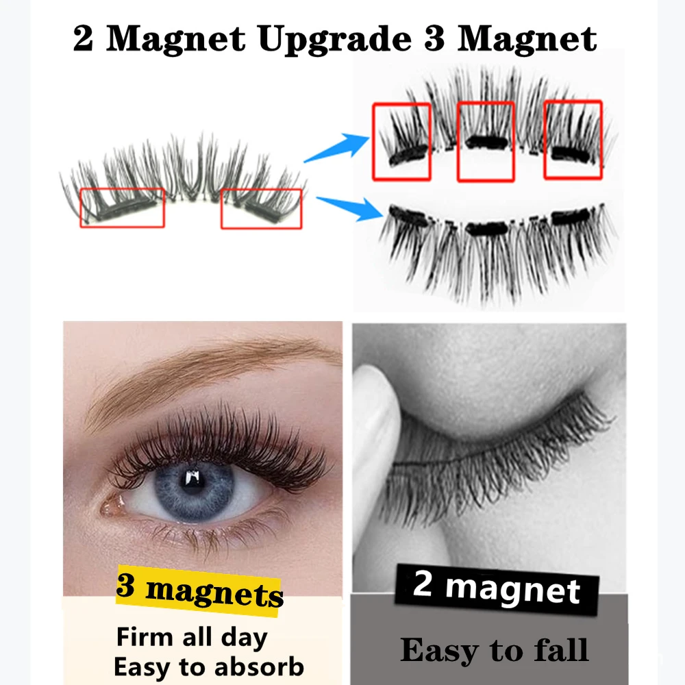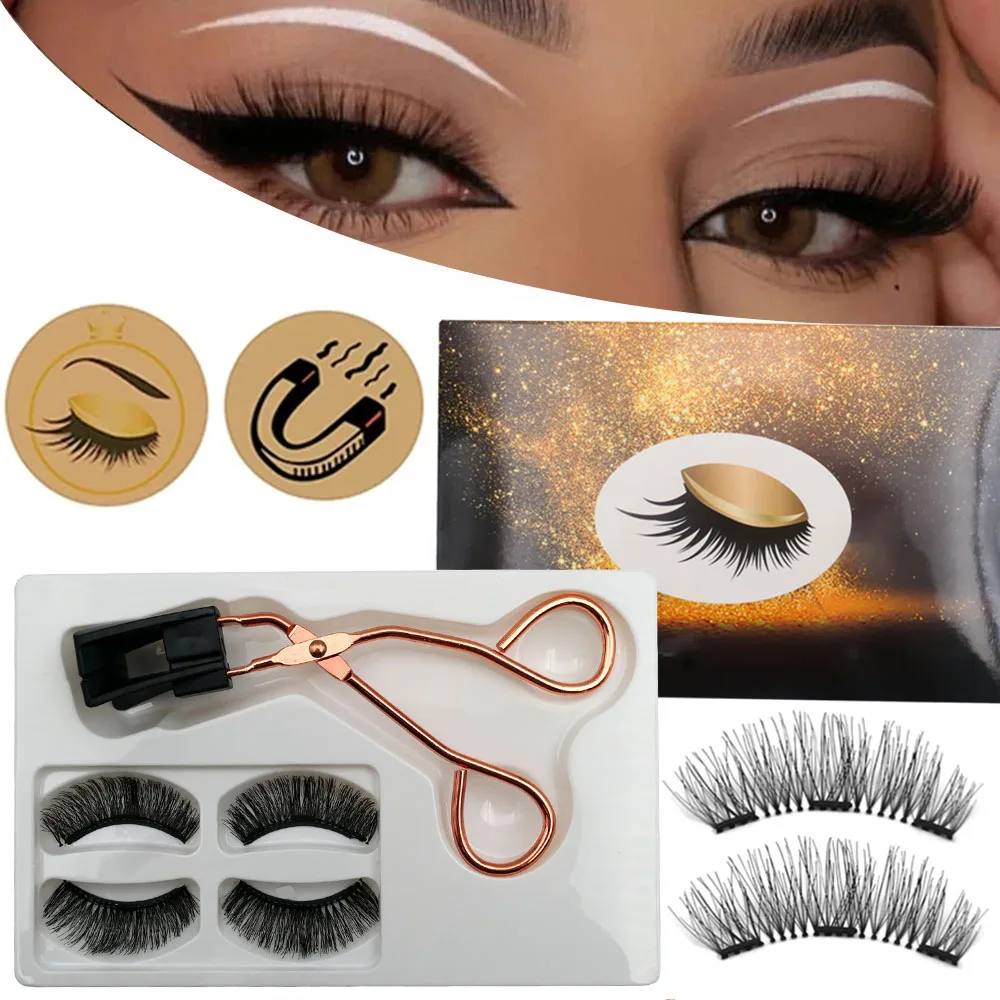Ресницы магнитные 3D натуральные, Многоразовые Накладные ресницы с 3 магнитами, 2 пары, 8 шт.