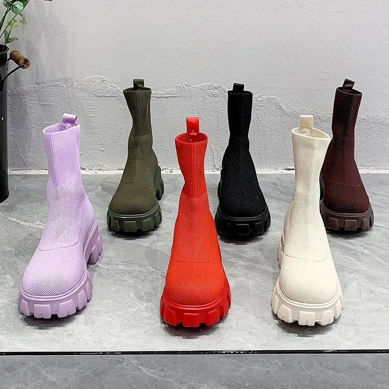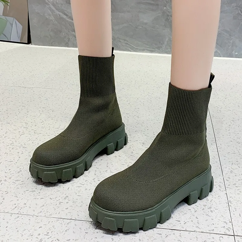 Женские ботинки-носки на платформе, разноцветные армейские ботильон...