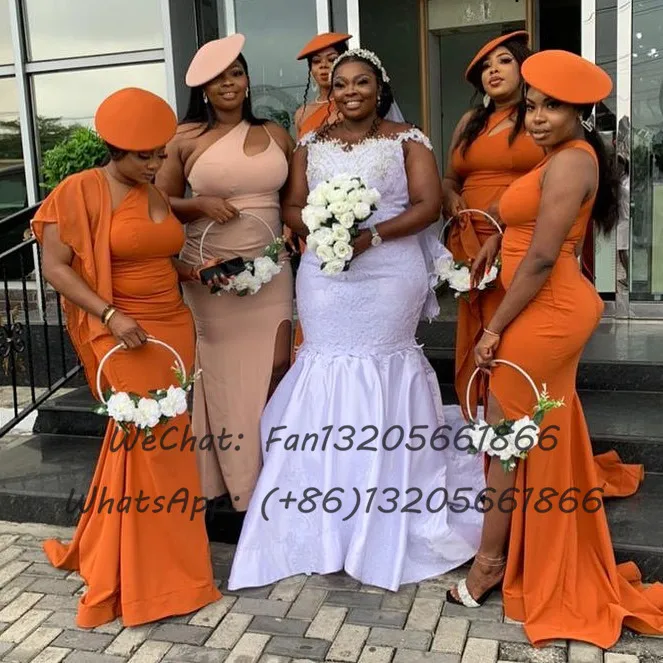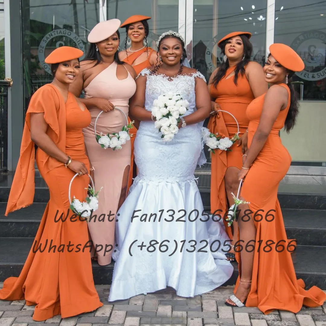 Простое оранжевое платье подружки невесты с юбкой-годе, платье на одно плечо в пол для свадебной вечеринки, 2022, платье Африканской подружки невесты без рукавов