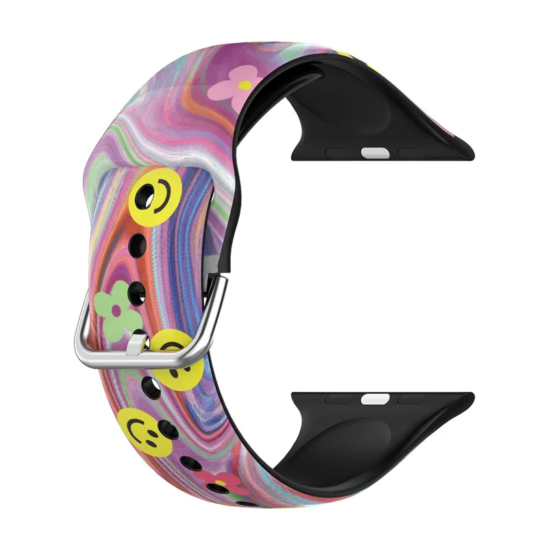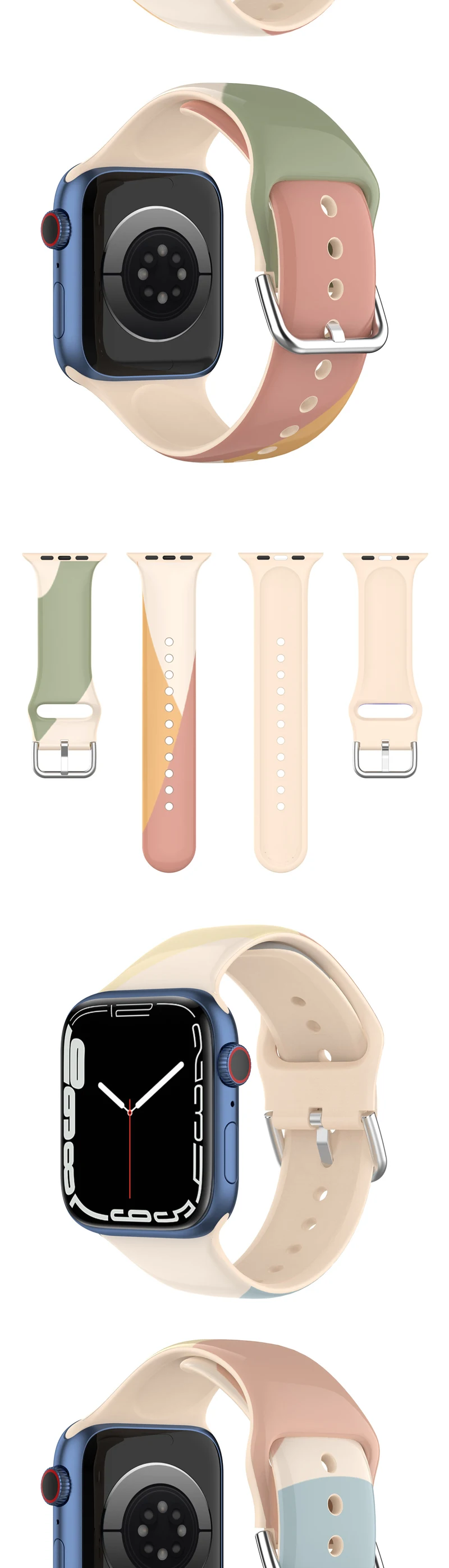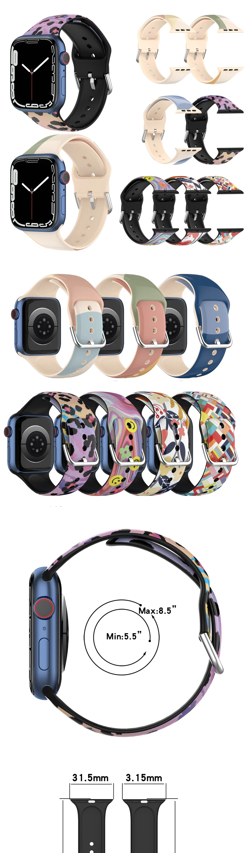 Ремешок с принтом для Apple watch Series 7 6 5 4 3 2 1 SE, мягкий силиконовый браслет для iWatch Series 38 мм 40 мм 41 мм 42 мм 44 мм 45 мм