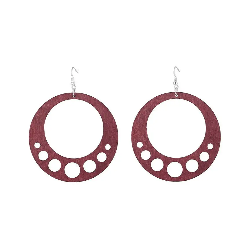 Полые круглые деревянные серьги для женщин, модные круглые деревянные массивные серьги, ювелирные изделия, оптовая продажа