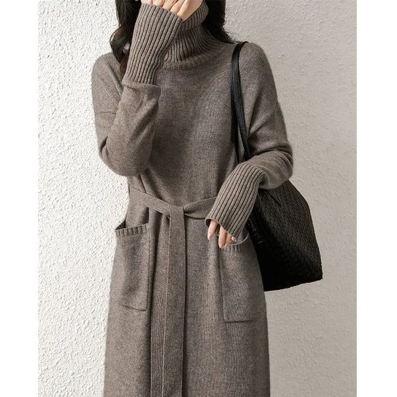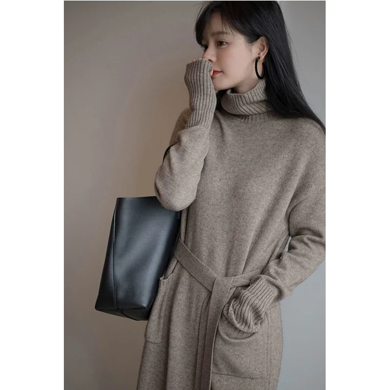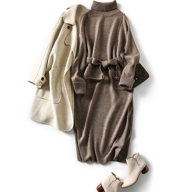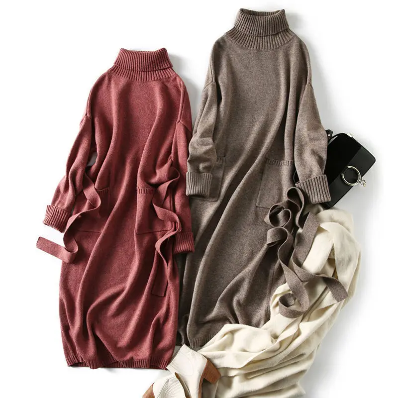 Рождественская женская одежда свитер платье новый год 2022 корейский стиль водолазка вязаное платье для интеллектуальной Леди Элегантный свитер Халат