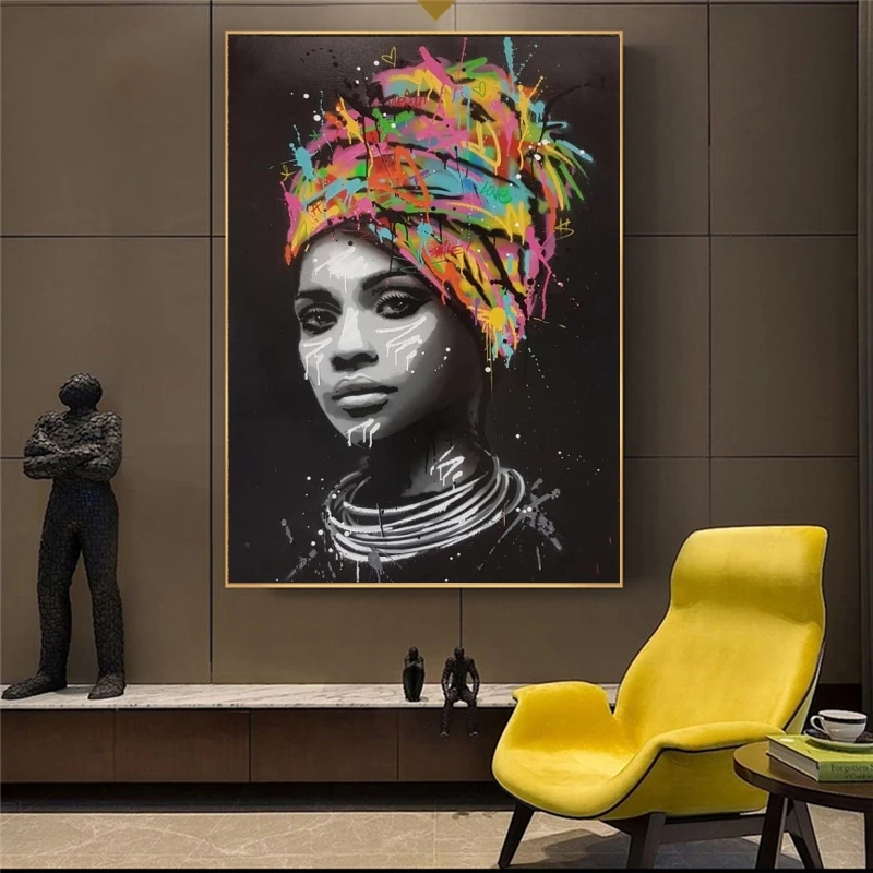Граффити искусство черной женщины холст настенные картины художеств...