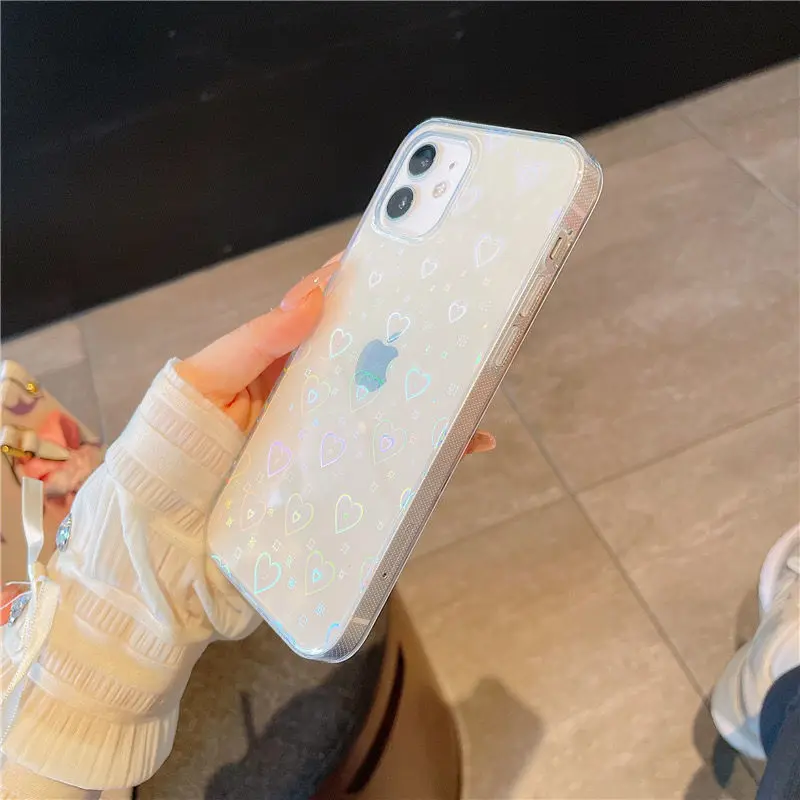 Feature 1Fashion Gradient Laser Love Heart Pattern Clear Phone Case
