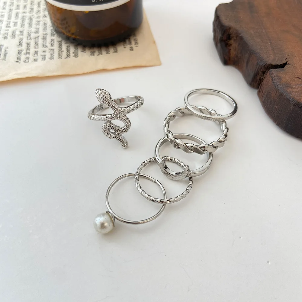 Новое металлическое кольцо для костяшек креативная личность змея Луны жемчужное кольцо набор 6 штук оптовая продажа