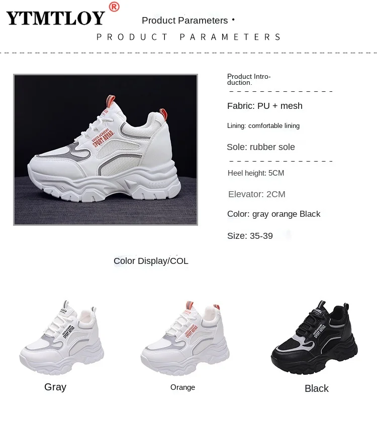 Кроссовки женские на высокой платформе, повседневная обувь на толст...