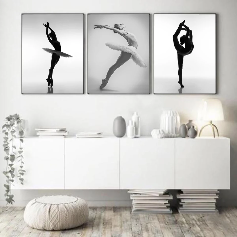 Черный и белый элегантный балетный танец Nordic печати плакатов пор...