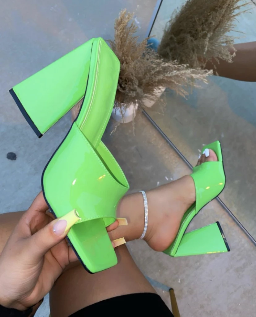 Мюли на высоком массивном каблуке, летние шлепанцы с открытым носко...