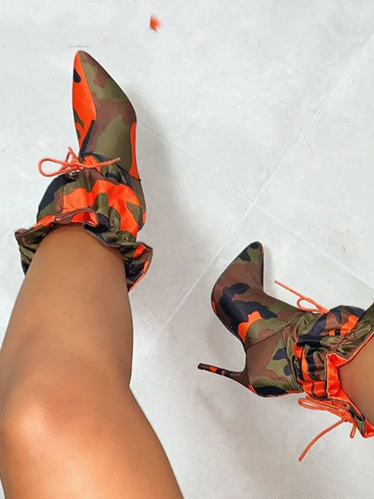 Женские ботильоны на высоком тонком каблуке 11 см со шнуровкой