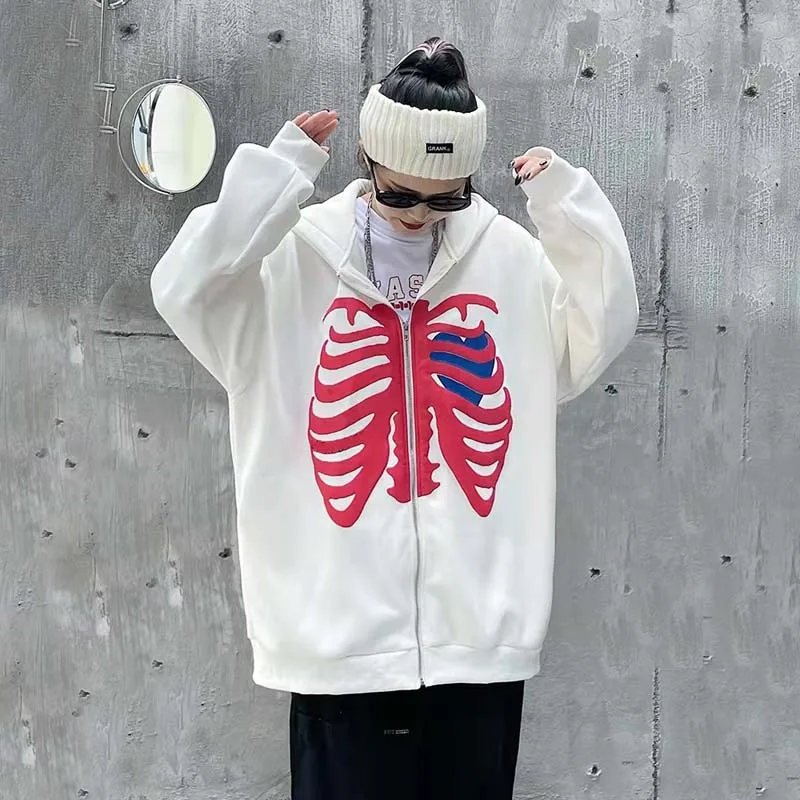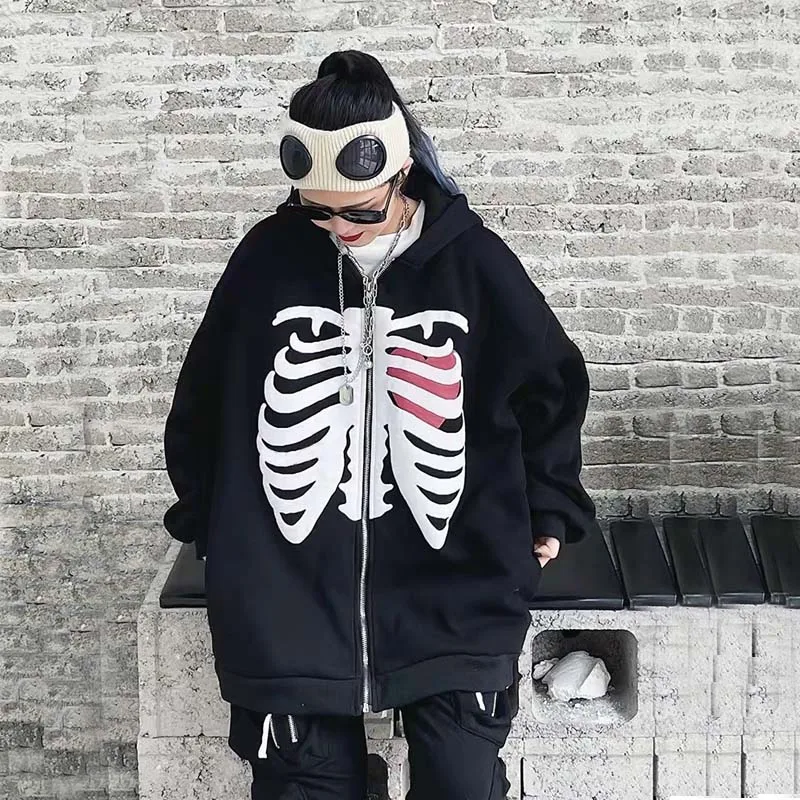 Мужская толстовка со скелетом на молнии, осенняя куртка большого размера с принтом черепа в стиле Харадзюку, куртка на молнии для женщин и мужчин, Готическая темная академия