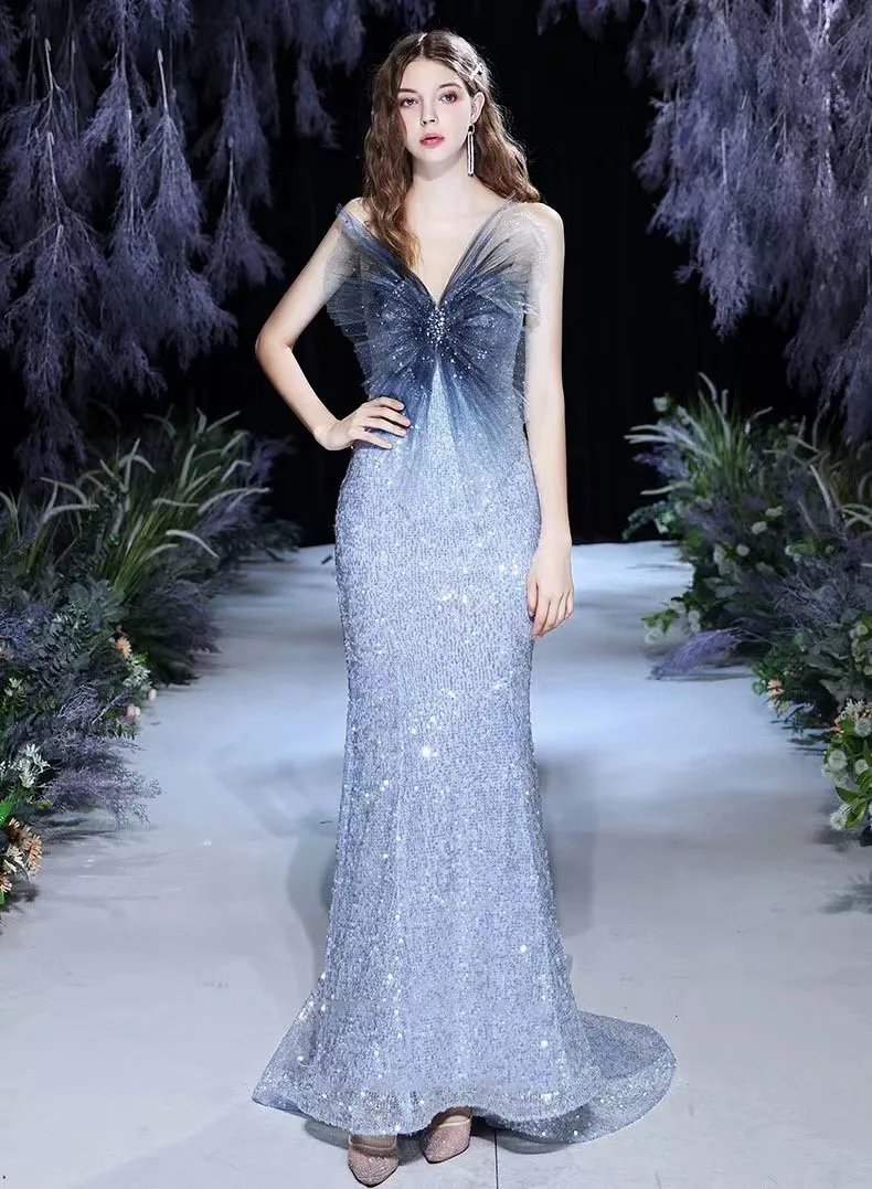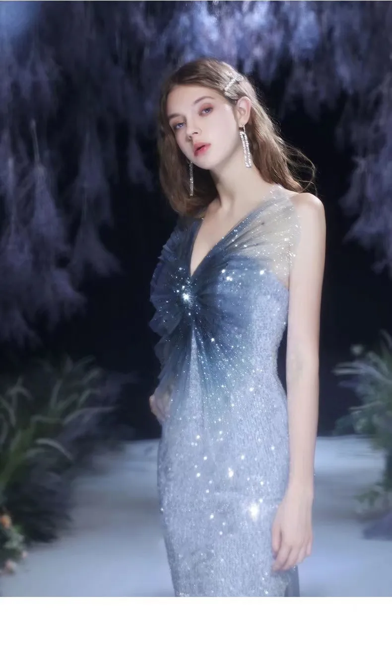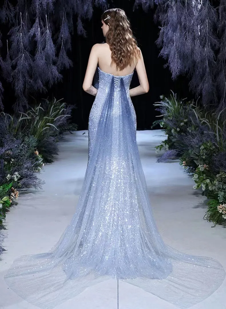 Роскошные Синие Вечерние платья-русалки градиентные цвета без бретелек Звездные блестящие бандажные блестящие платья знаменитости для свадебной вечеринки выпускного вечера