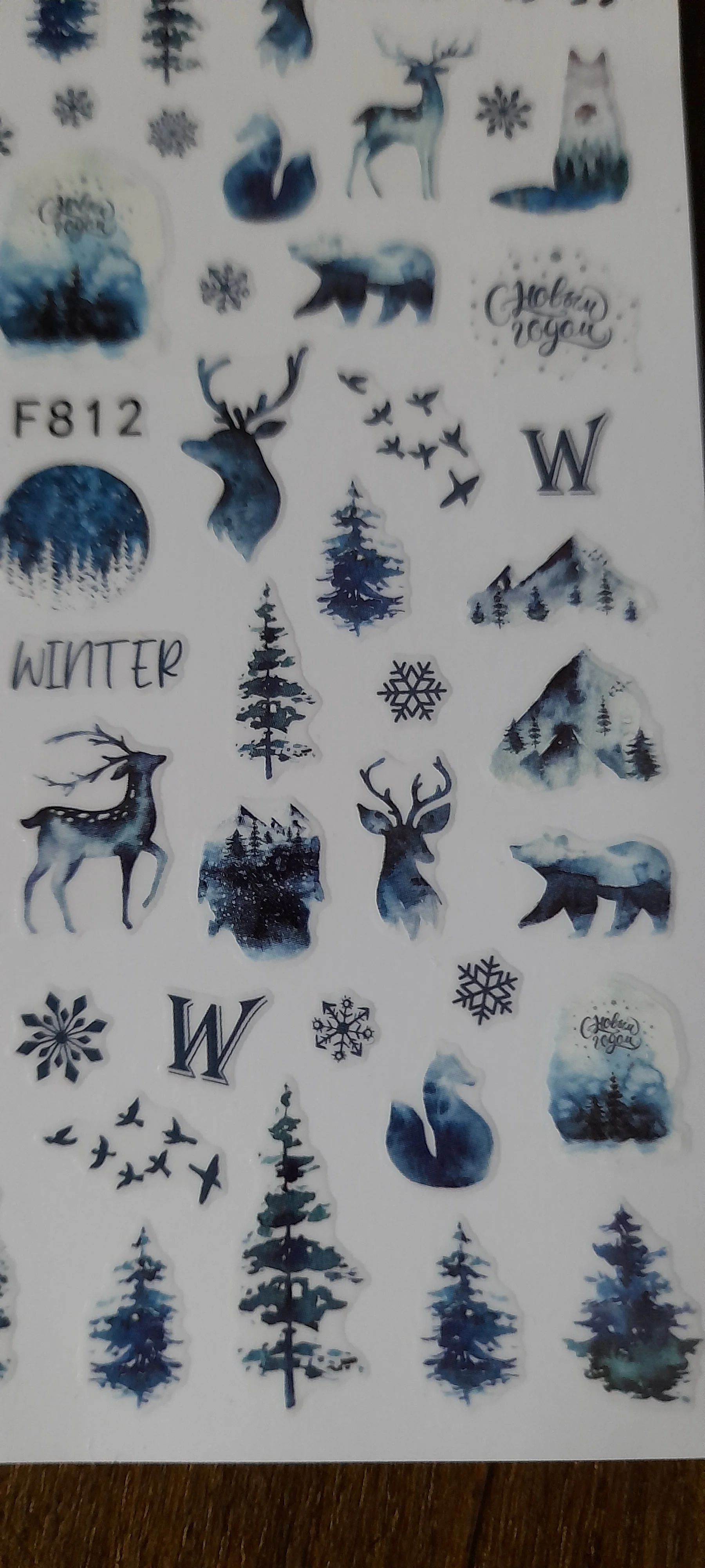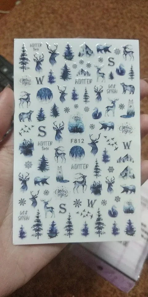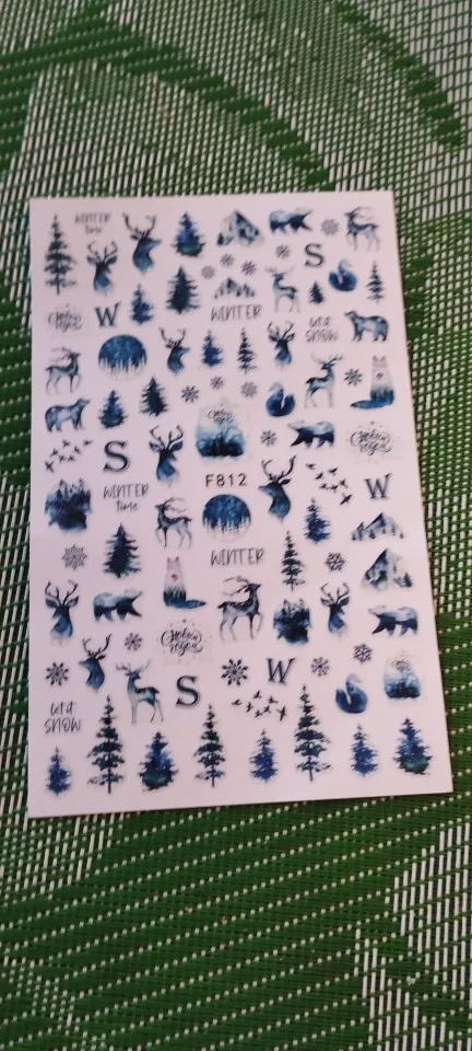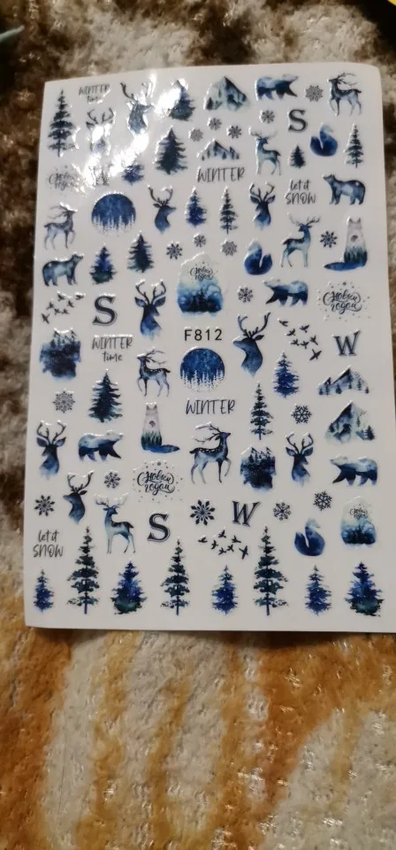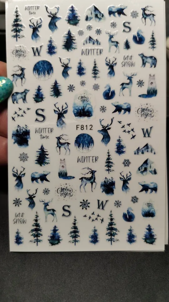 1 шт. синие рождественские 3D-наклейки на ногти с оленем, снежинка, зимний лист, пламя, птицы, Переводные слайдеры, Абстрактные Художественные переводки, маникюр