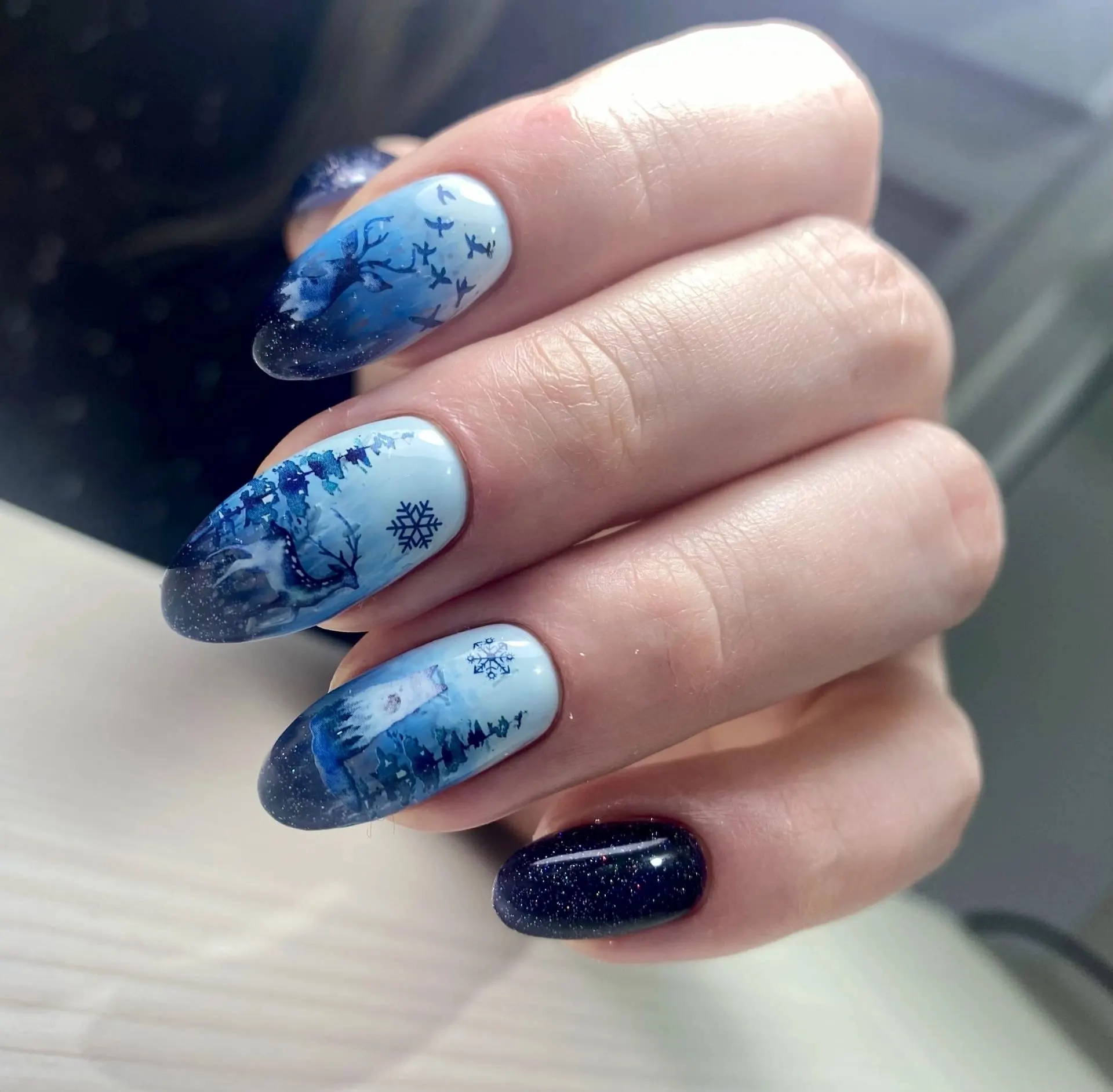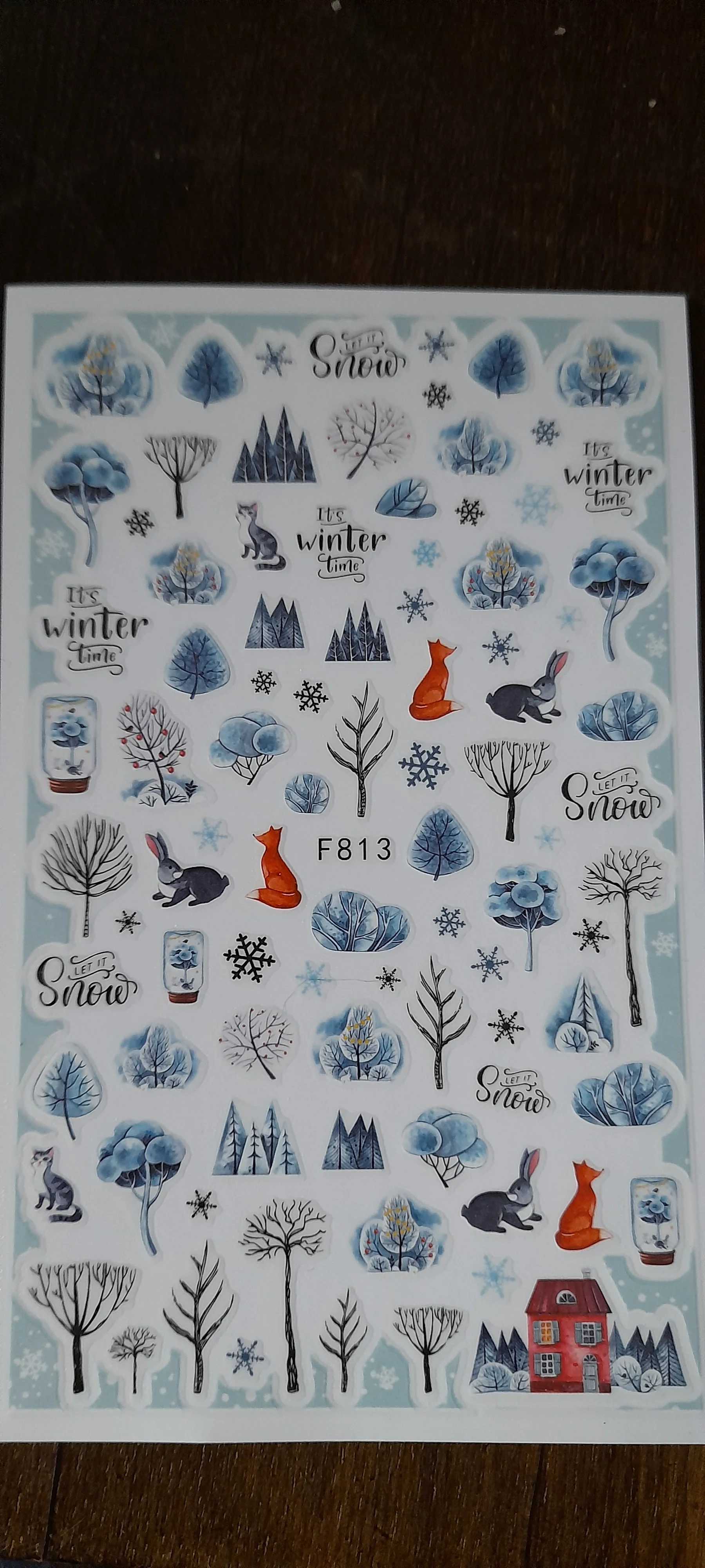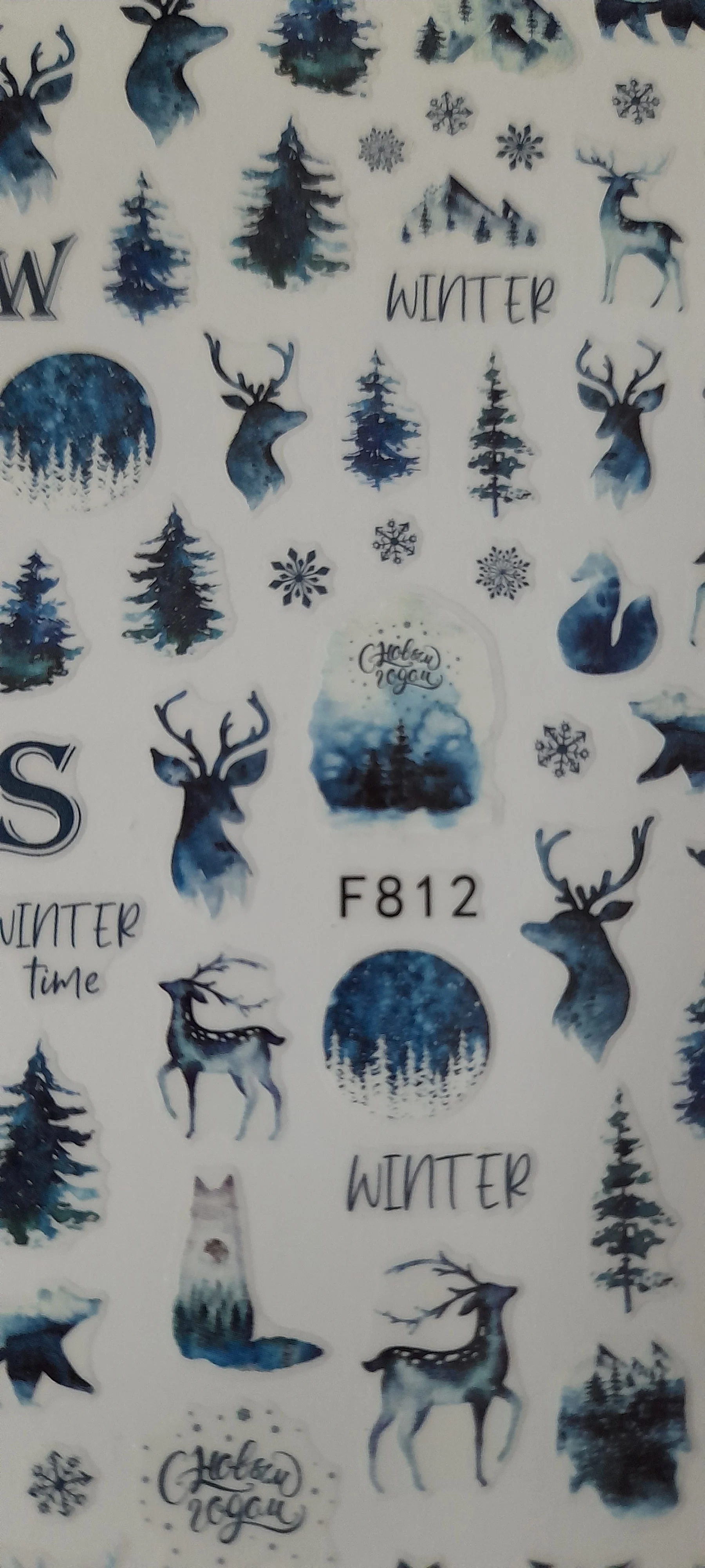 1 шт. синие рождественские 3D-наклейки на ногти с оленем, снежинка, зимний лист, пламя, птицы, Переводные слайдеры, Абстрактные Художественные переводки, маникюр