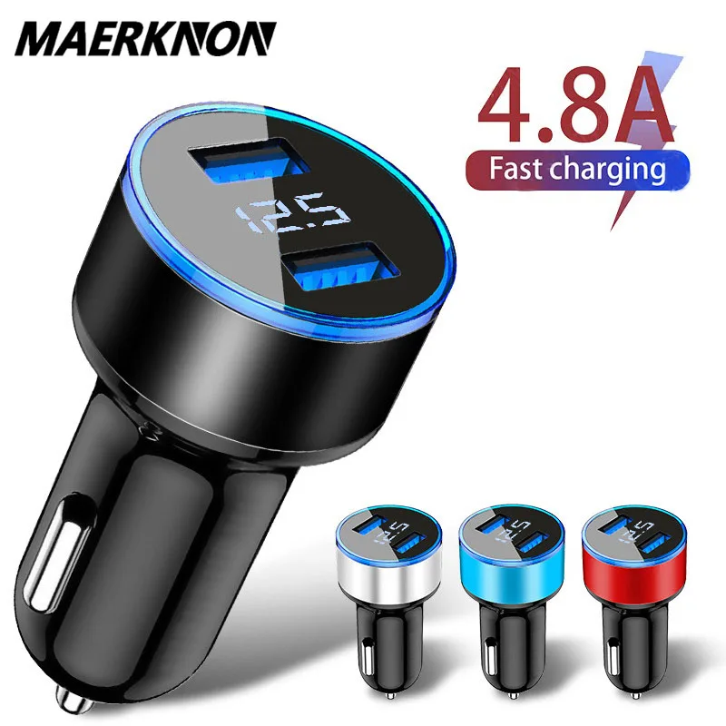 Автомобильное зарядное устройство 4.8A светодиодный дисплей двойной USB адаптер быстрой зарядки для iPhone 12 13 Samsung Xiaomi 11 автомобильное зарядное устройство мобильный телефон зарядное устройство