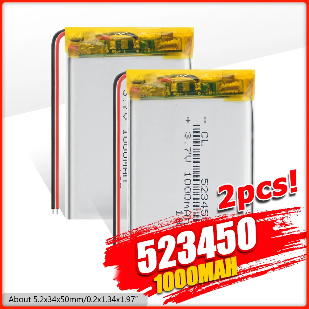 Перезаряжаемые литий-полимерные аккумуляторы YCDC 3,7 в 523450 1000 мАч для GPS PDA, камеры PSP Toys, сменная литий-полимерная батарея с дистанционным управлением