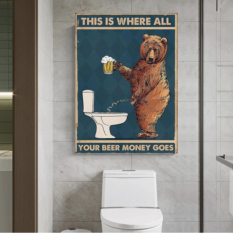 Постер на холсте в туалете, медведь журкий, питьевое пиво в ванную комнату, Абстрактная Картина на холсте, принты, Настенная картина для домашнего декора