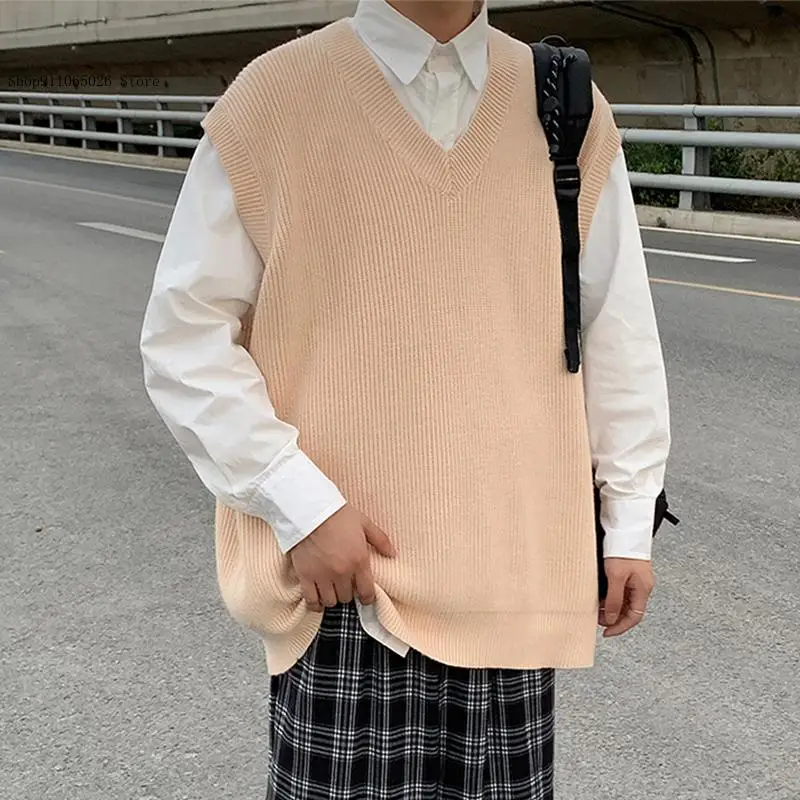 Мужской Свободный жилет без рукавов, мужские свитера, жилеты, мужские зимние повседневные трикотажные пуловеры с V-образным вырезом