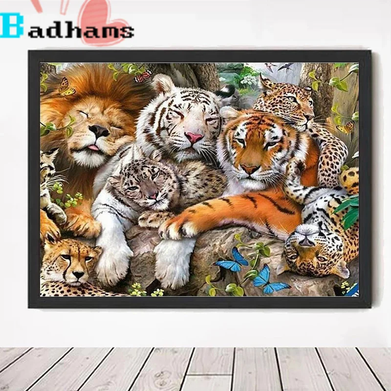 Алмазная живопись тигр, лев, леопард, 5D DIY Вышивка крестиком Стразы мозаика для гостиной домашний декор