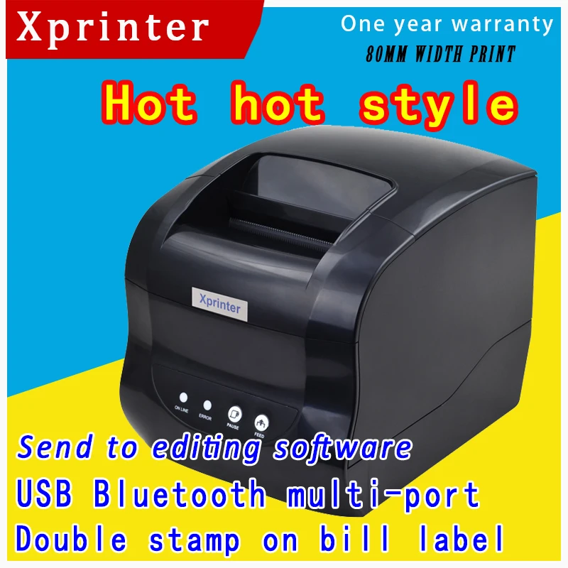 Принтер Xprinter XP 365B для ярлыков от 20 до 80 мм, устройство для изготовления этикеток, чеков, QR-кодов, Bluetooth, LAN, USB
