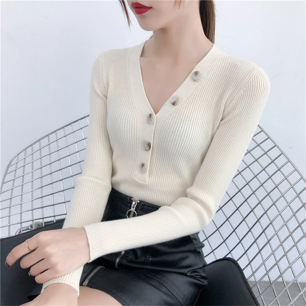 Женская трикотажная рубашка с V-образным вырезом и длинным рукавом