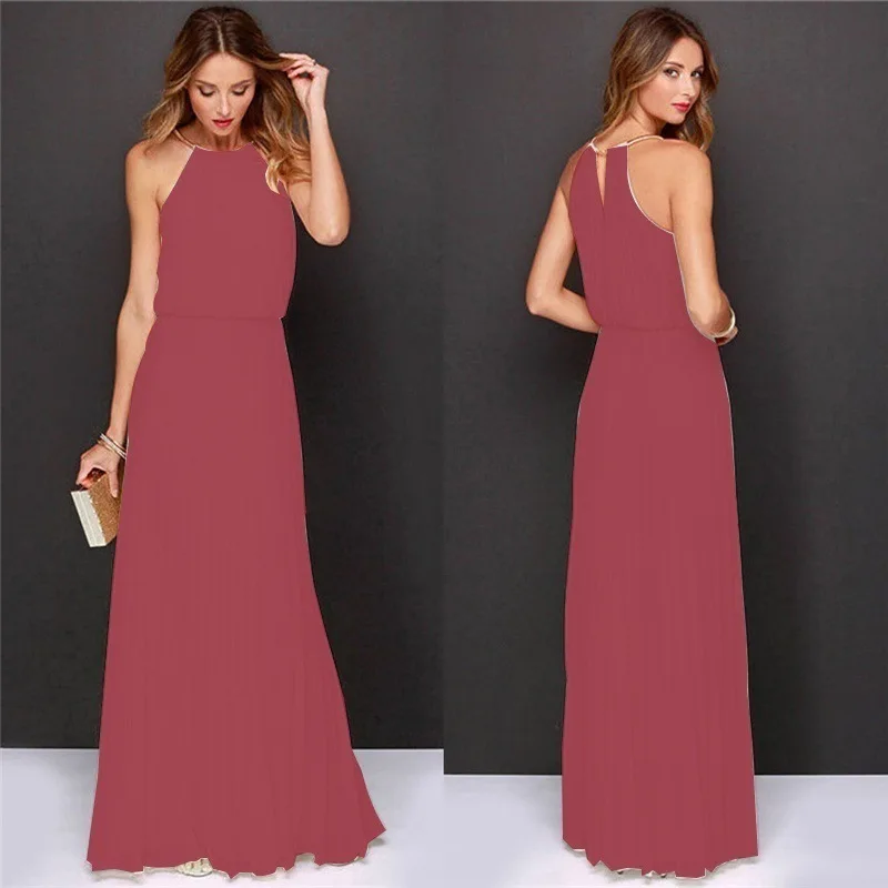 Платье женское длинное в стиле бохо, пикантное элегантное Клубное Бандажное, без рукавов, с лямкой на шее Вечерние вечернее Макси-платье для подружки невесты, на лето