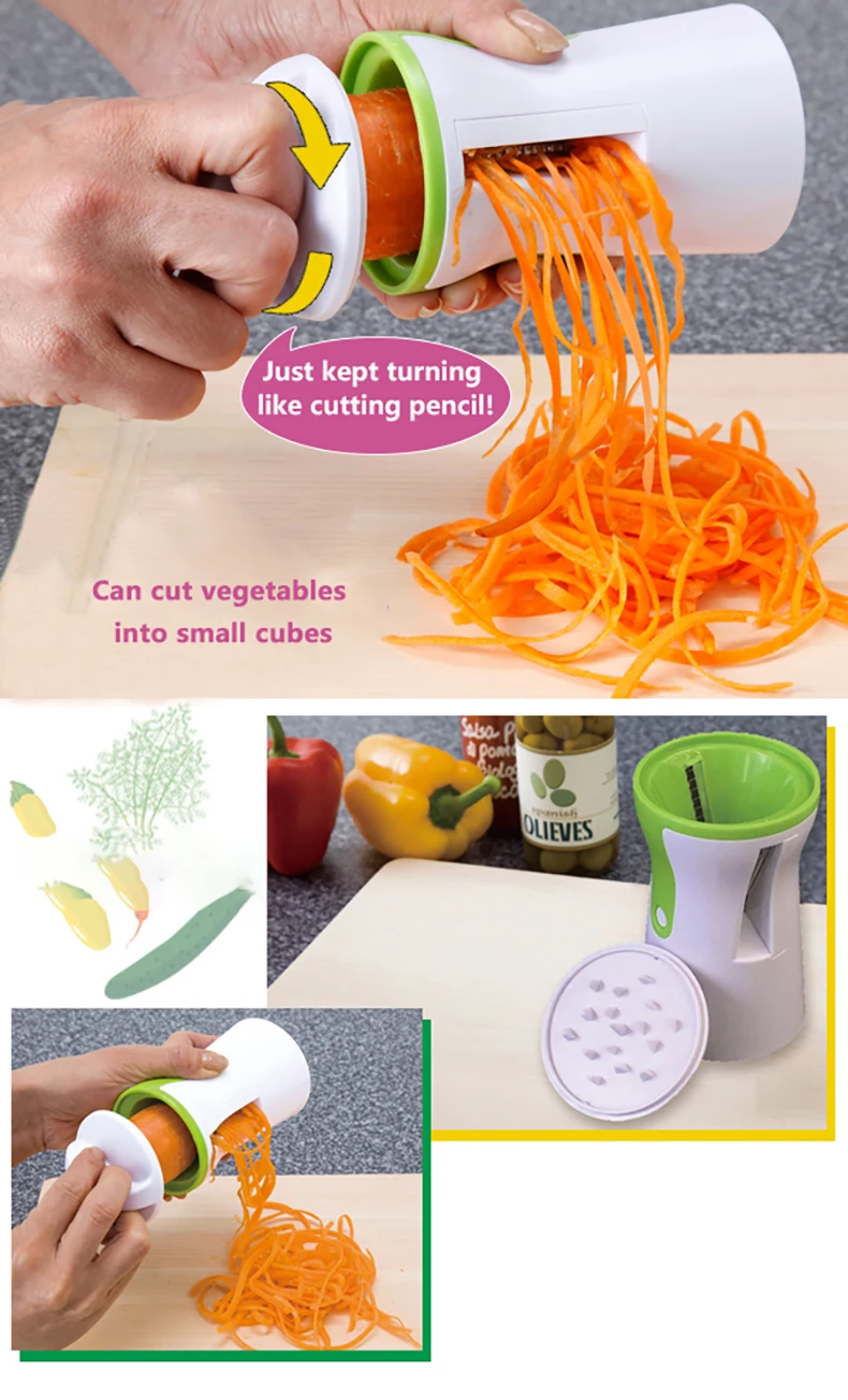 2. Простая салатная машина с тремя лезвиями: вы можете выбрать 3 различных типа кружек, палочек или форм лапши, чтобы помочь вам легко сделать салаты.