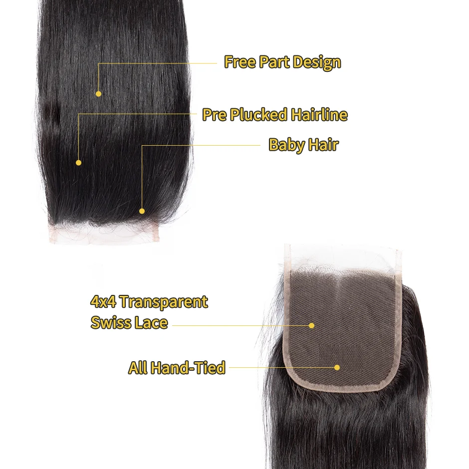 Прямые волосы 3/4 пряди с 4x4 кружева закрытие