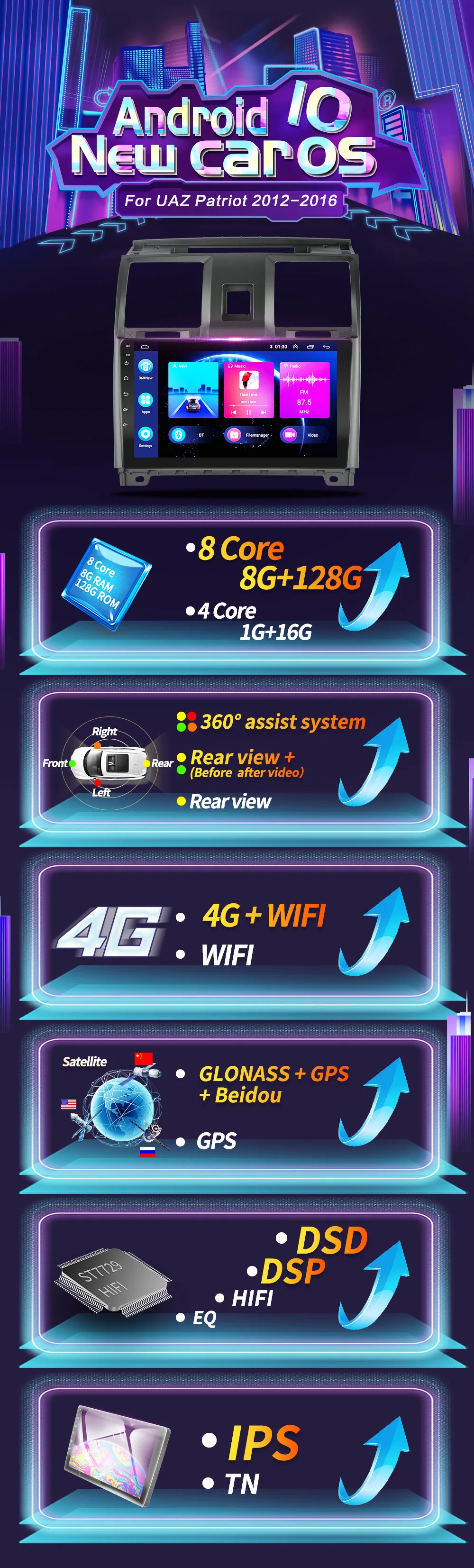 360 вспомогательная система 4G 8-ядерный DVR Android 10 автомобильное радио мультимедийный видеоплеер для уаз патриот 3 2012-2016 GPS-навигация 2 DIN