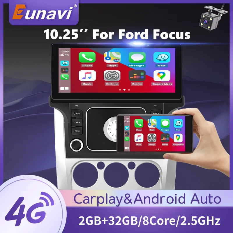 Eunavi 2 Din Android 10 10,25 дюймов Автомобильный Радио мультимедийный плеер для Ford Focus 2 3 Mk2 Mk3 2004-2011 2G 32G GPS 8Core 2,5 GHz WIFI