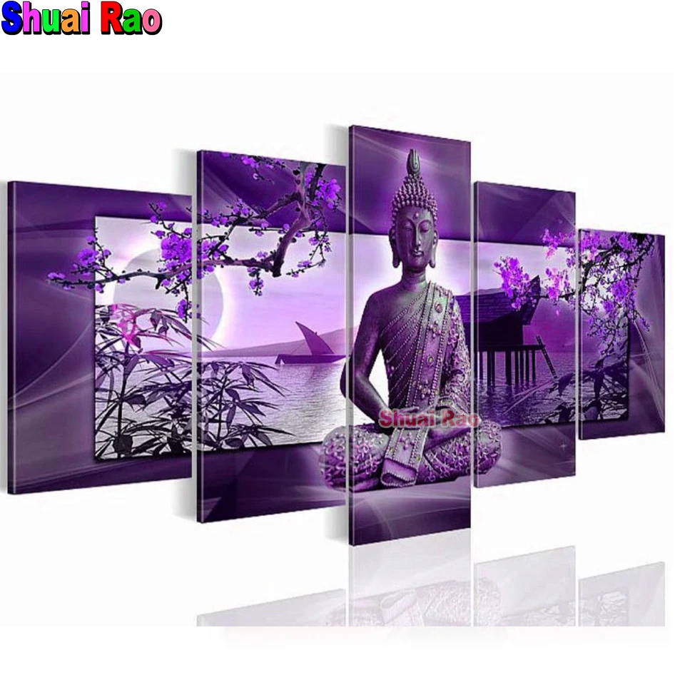Фиолетовый цветок Будда Алмазная картина 5 шт Алмазная мозаика полный квадрат/круглая Алмазная вышивка, дзэн-буддизм домашнее искусство