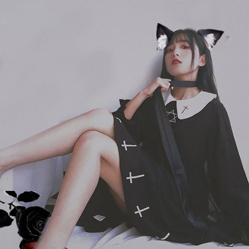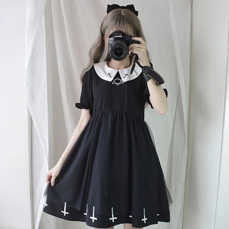 Женское платье в стиле Лолита, готическое мягкое фатиновое платье в японском стиле Харадзюку со звездами, для косплея, милая уличная одежда для девушек