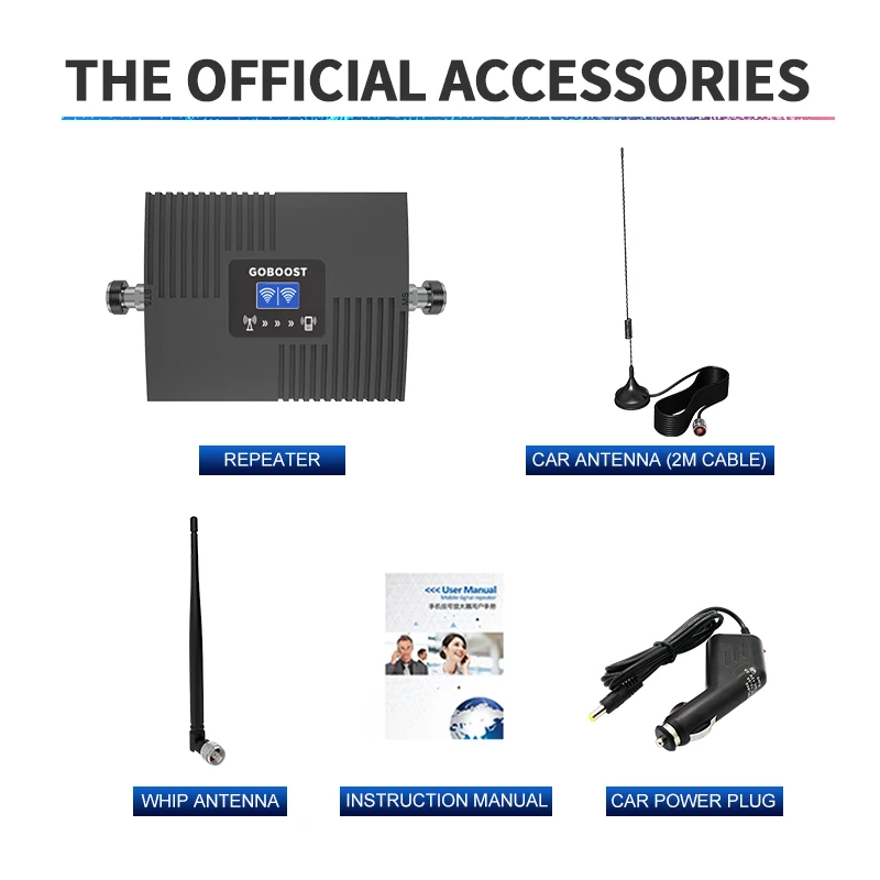 Двухдиапазонный усилитель сигнала GOBOOST для автомобиля, 65 дБ усилитель сотовой связи 2G 3G 4G, сетевой Ретранслятор с комплектом автомобильной антенны