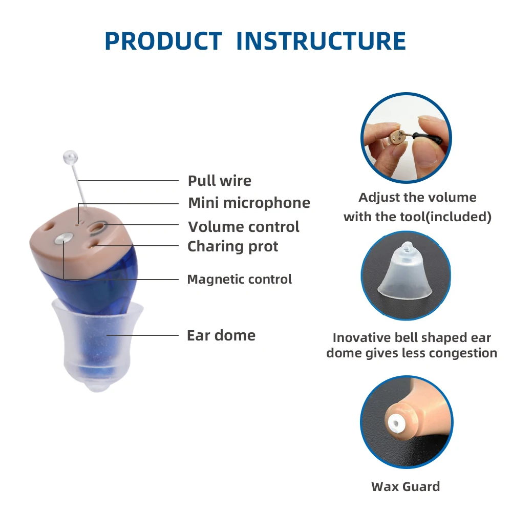 Перезаряжаемый слуховой усилитель для слуха и помощи слуху пожилых людей и взрослых, невидимые цифровые мини-усилители, маленький светильник